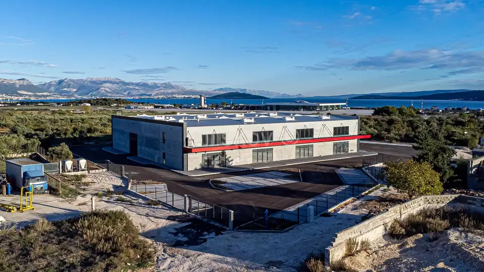Okolica Trogira - Plano, uz brzu cestu Split - Trogir, nasuprot novog trgovačkog centra Spot Mall, hala u novogradnji površine cca. 2000 m², etaže prizemlja, na parceli površine 6.077 m².